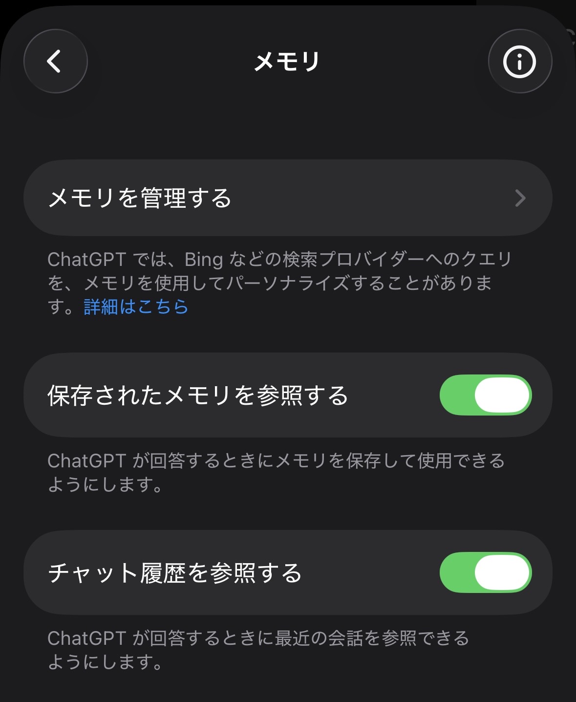 - メモリを使っているなら、保存メモリの削除/チャット履歴参照のオフ