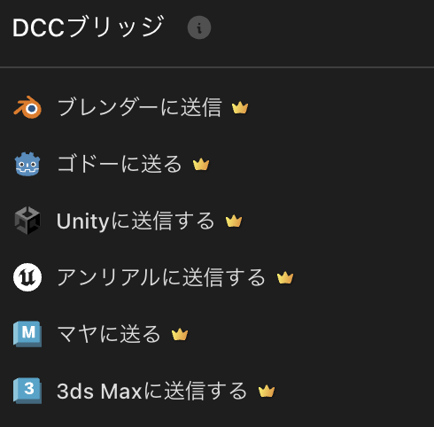 3ds Maxに送信する(👑):3ds Maxで編集したいときに使います。