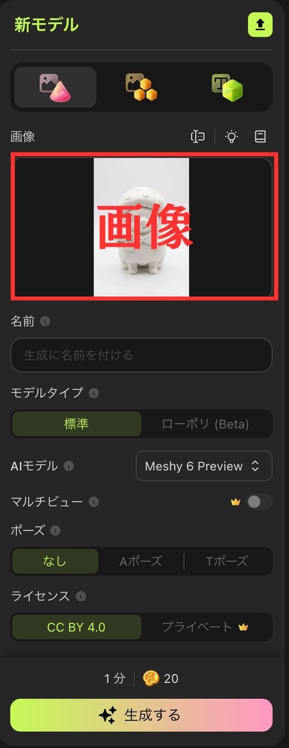 【初心者OK】Meshyの使い方|画像から3Dモデル生成(画像生成モデル)手順とボタン解説