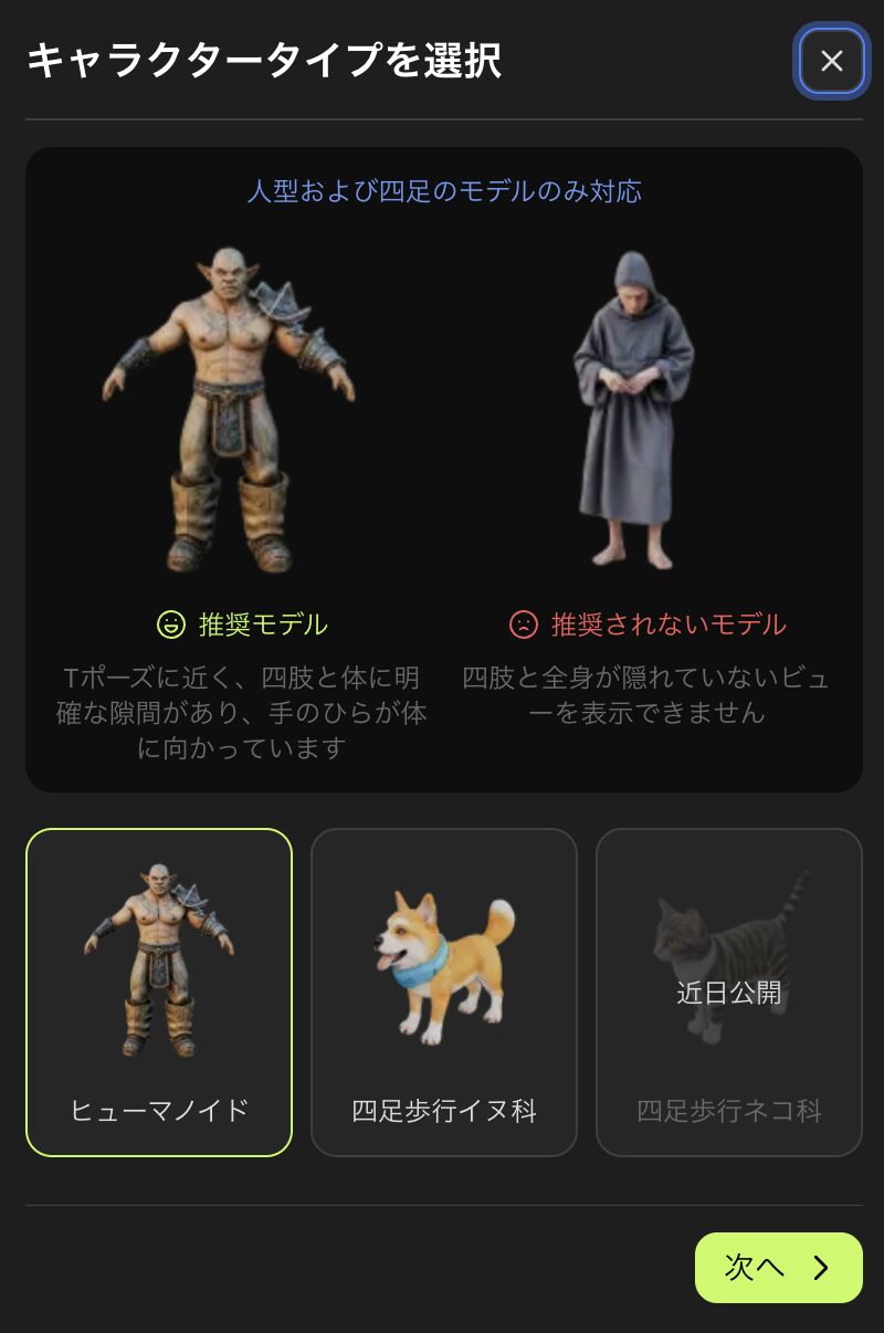 あわせて、生成後に迷いがちな画面下のボタン列(再生成・テクスチャ・リメッシュ・リギング・共有・ダウンロード)の意味も、初心者向けに端的に解説します。