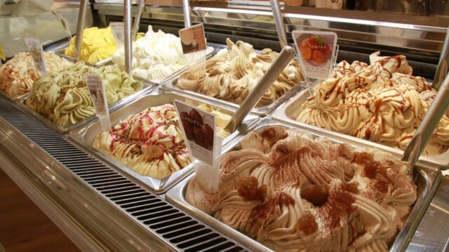 ここを訪れる多くの人の目的が、世界大会での優勝経験を持つ職人・柴野大造氏が手がける「マルガージェラート」です。 能登の素材にこだわり、能登の塩、能登のミルク、季節の地物フルーツを駆使したジェラートは、まさに芸術品。