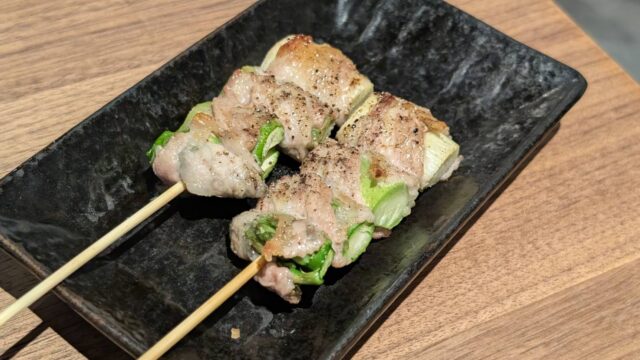 売り切れを嘆く暇はありません。残っているメニューの中から選んだ「アスパラの豚肉巻き」や定番の鶏串が、そんな思いを吹き飛ばしてくれました。