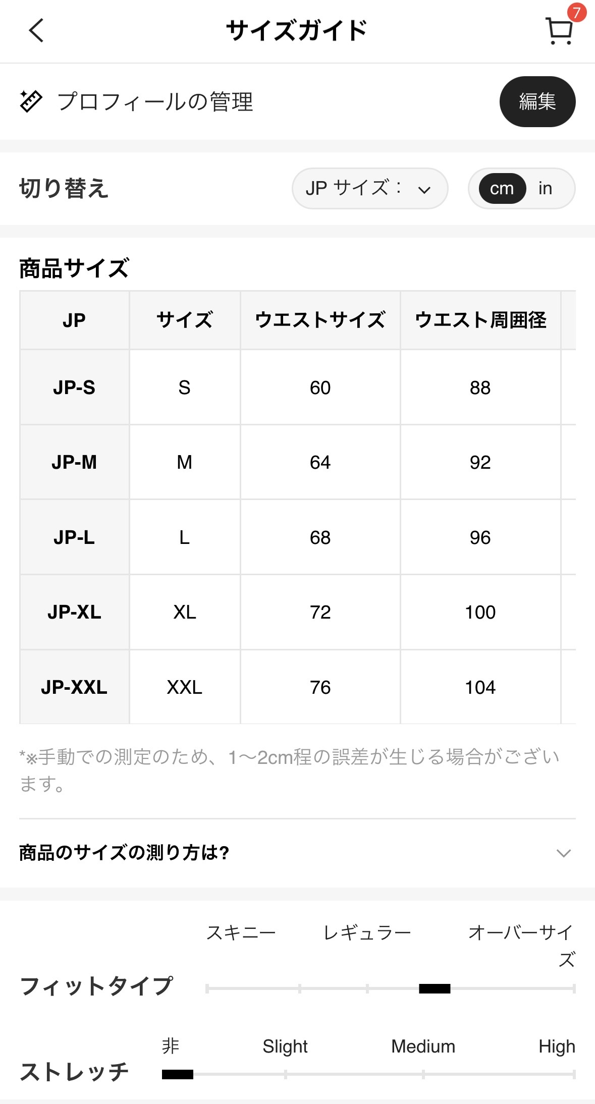 - 手持ち服の実寸と照合して、近いものを選ぶ